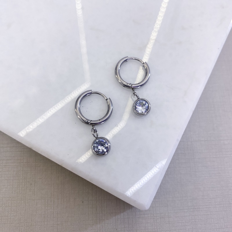 Brinco argolinha ponto de luz zircônia dourado – aço inoxidável