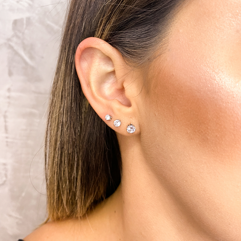Brinco ponto de luz em zircônia 3 mm projetada prata – aço inoxidável.