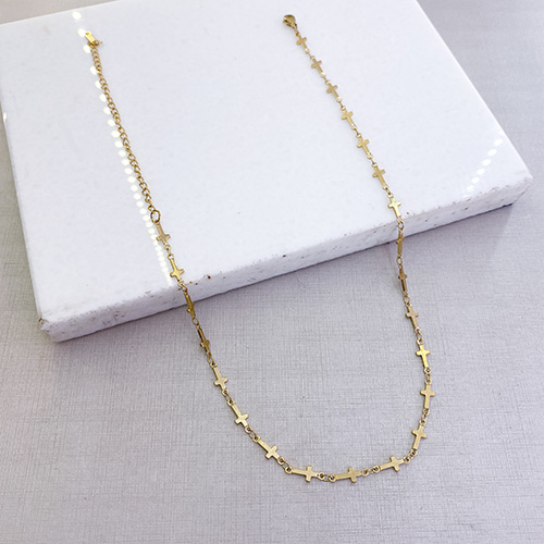 Essa choker é para você que ama acessórios minimalistas e cheios de estilo! Ela é composta por pequenas cruzes lisas em toda sua extensão. Essa peça representa sua fé e seu design moderno a torna versátil, pode ser usada de dia e até em ocasiões mais sofisticadas de noite.