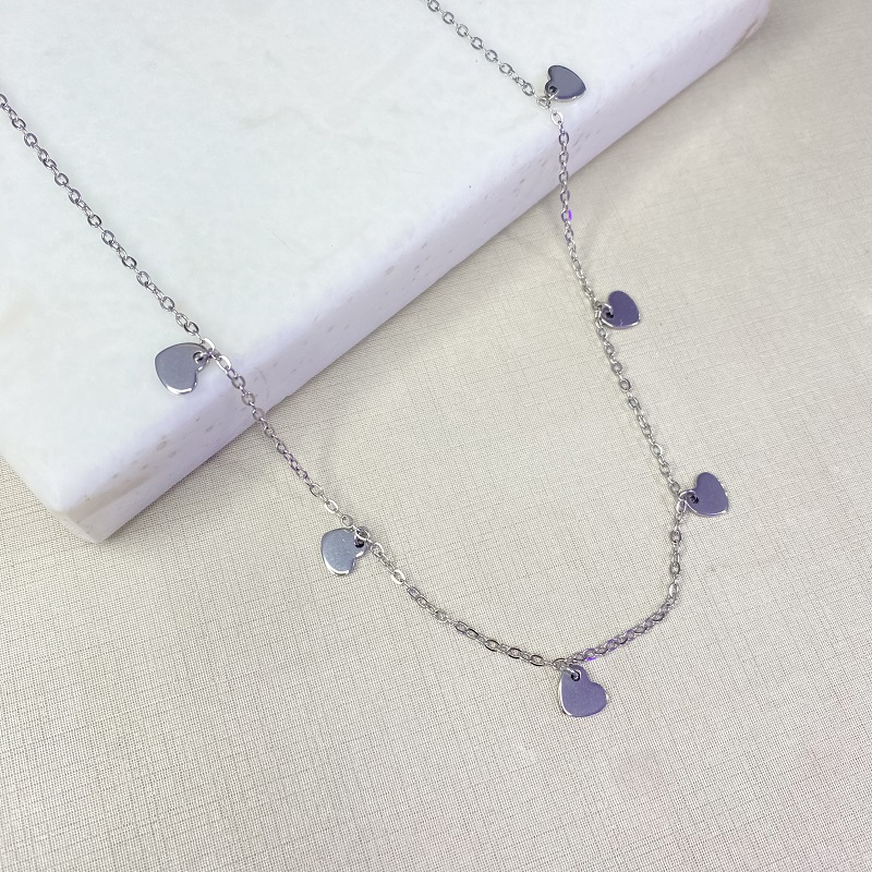 Choker medalha coração prata – aço inoxidável