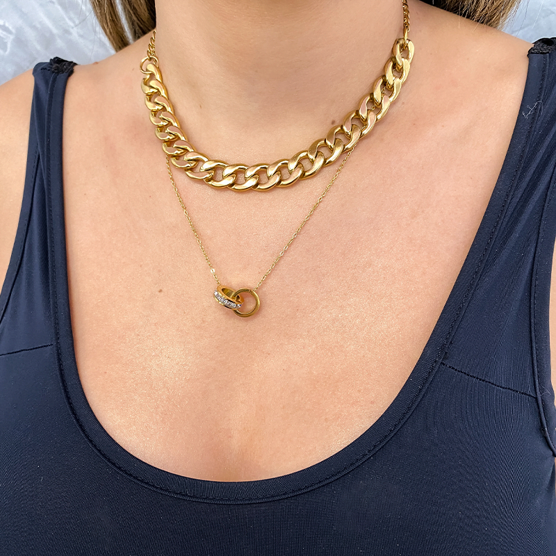 Colar 2 elos entrelaçados cravejado inspired dourado – aço inoxidável