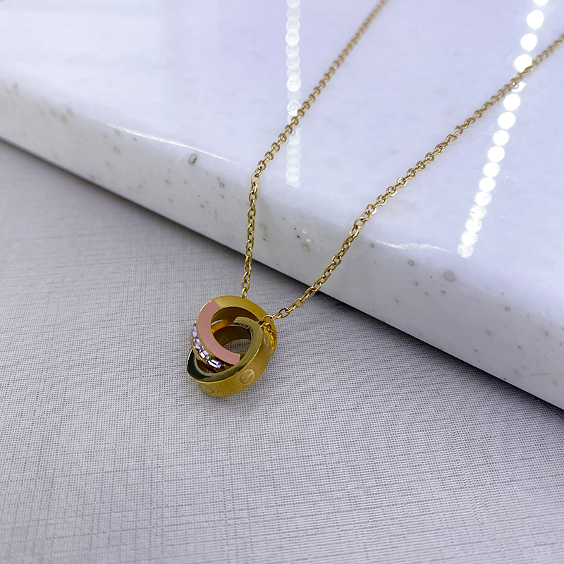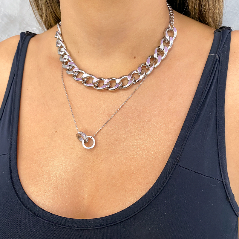 Colar 2 elos entrelaçados cravejado inspired prata – aço inoxidável