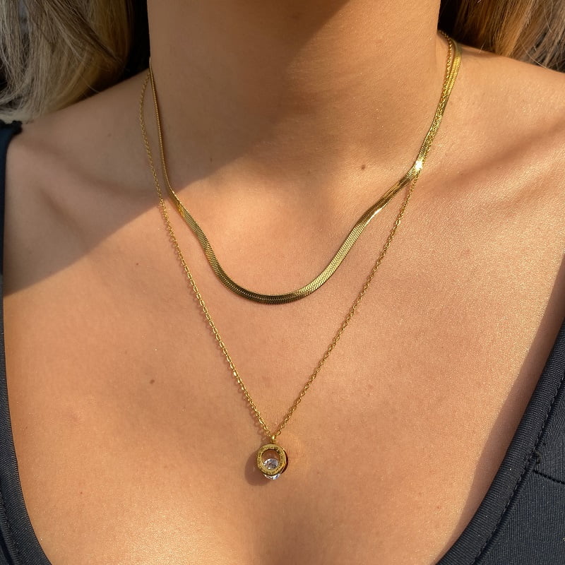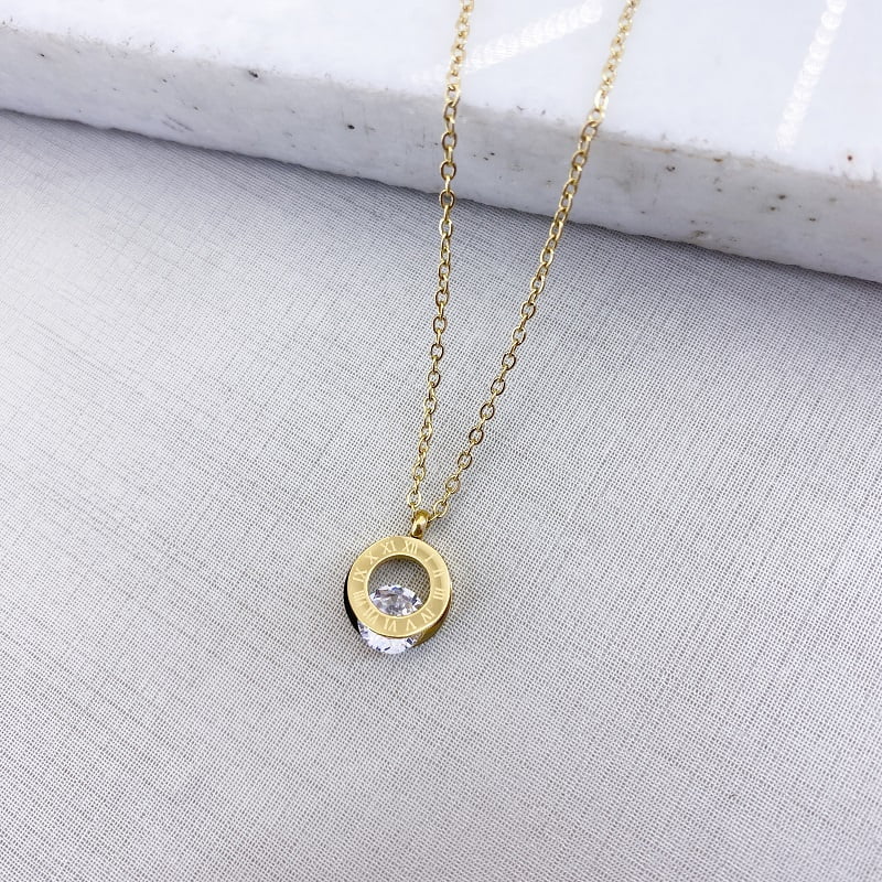 Colar algarismos ponto de luz eclipse dourado – aço inoxidável
