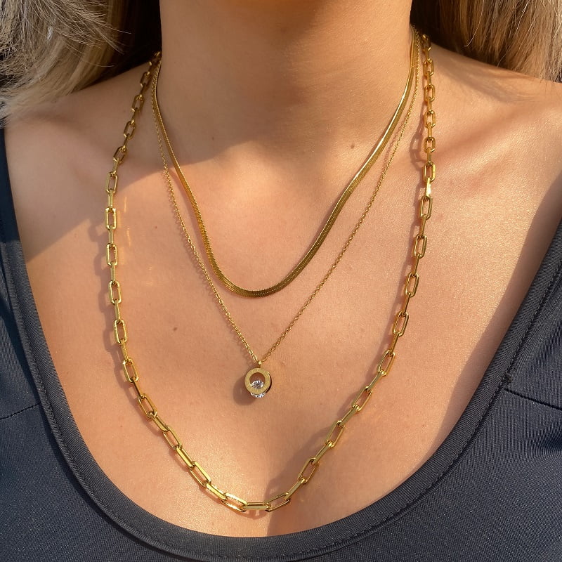 Peças douradas possuem a base em aço inoxidável e recebem uma camada PVD ou ouro 18k, garantindo uma excelente durabilidade no banho da peça.