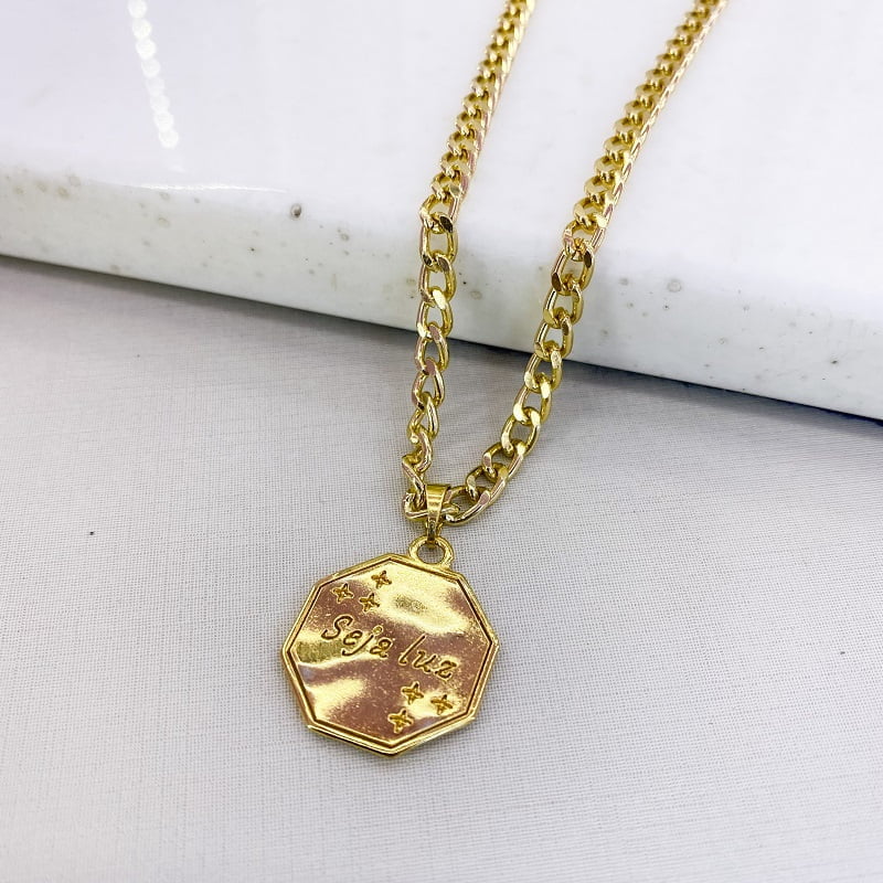Esse colar de medalha é um acessório muito moderno! Combine com mais correntes e colares e deixe o seu look mais glam! Perfeito para ser usado em qualquer ocasião.