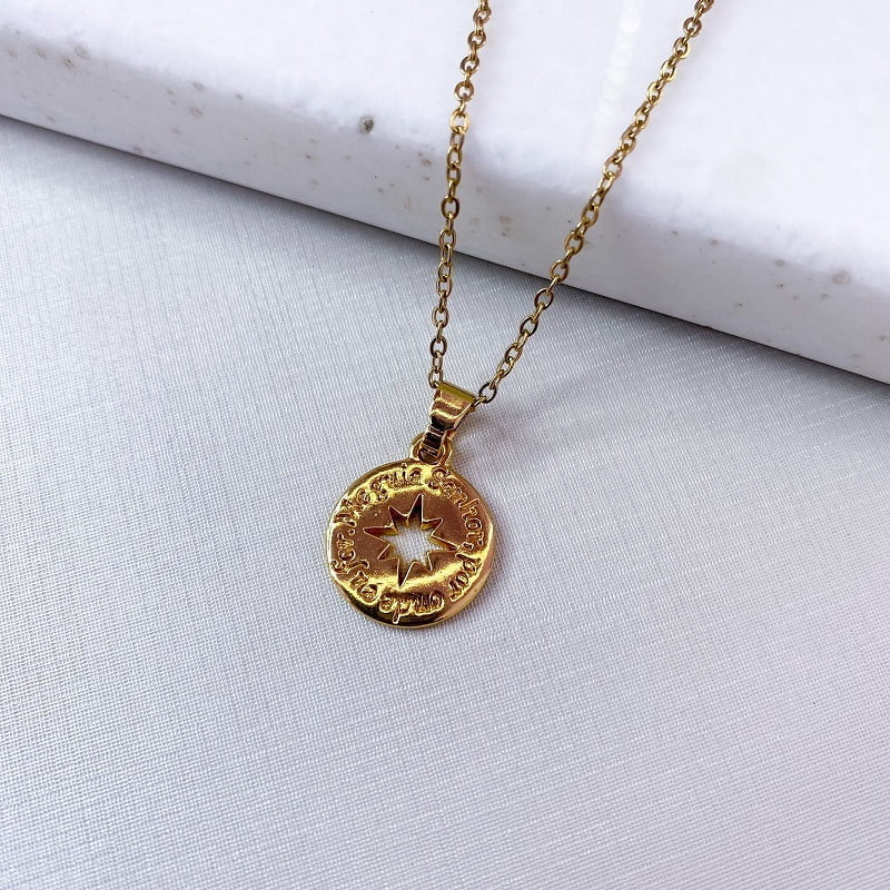 Colar Rosa dos Ventos “Me guia Senhor, por onde eu for” dourado – aço inoxidável + folheado