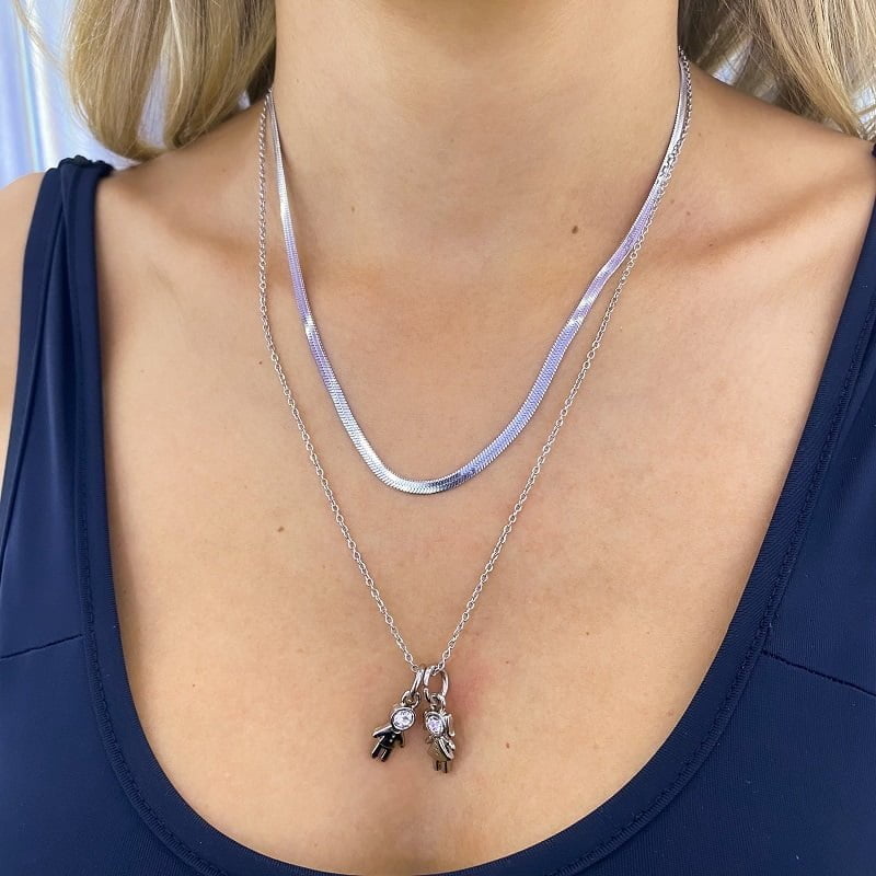 O colar filhos é composto por uma corrente de elos fina e com pingentes, que você personaliza conforme sua preferência, em formato de menina e ou menino com um strass na cor cristal, rosa ou azul. É uma peça linda e moderna, perfeita para você usar ou presentear pessoas especiais. Esta peça pode ser usada em diversas ocasiões e já é uma das queridinhas aqui da Mystic por trazer o simbolismo de carregar consigo sempre seus filhos e estar na moda. Use sozinho ou combine com outros acessórios e arrase!