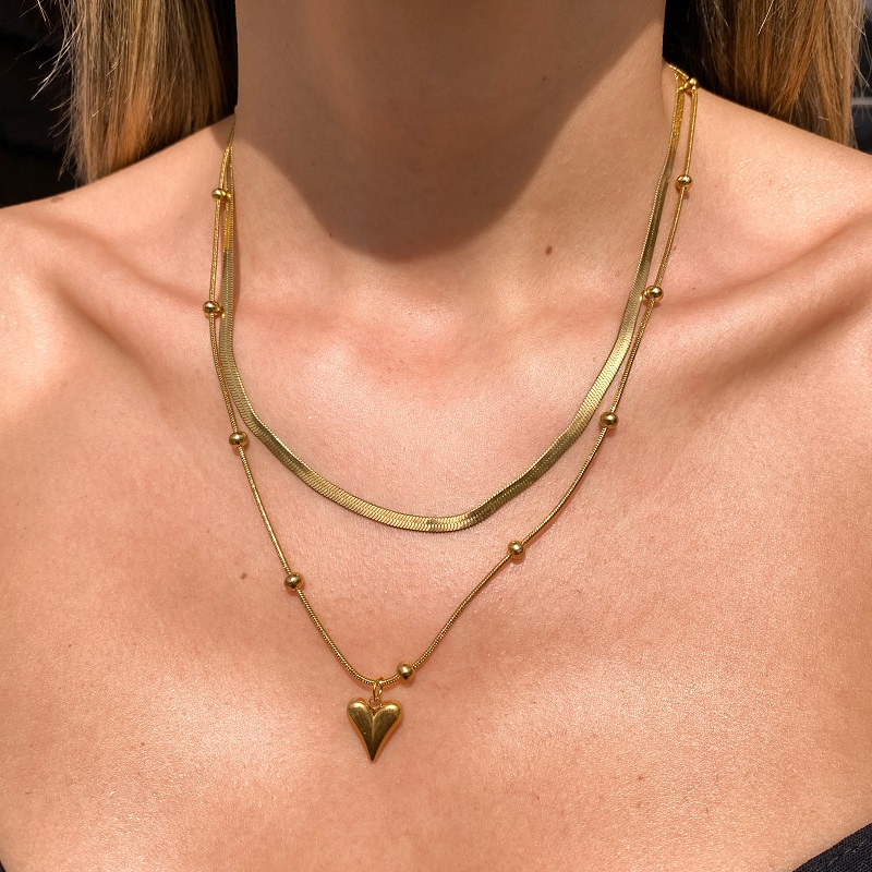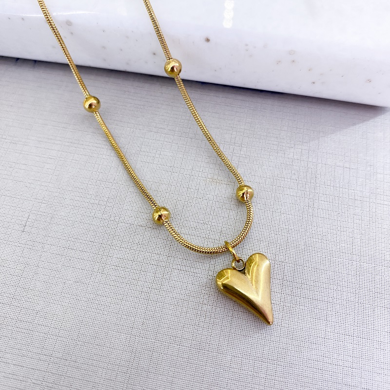 Colar rabo de rato bolinhas coração orgânico dourado – aço inoxidável