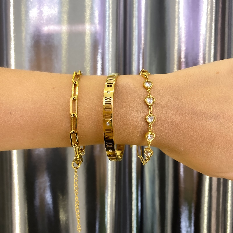 Bracelete algarismos romanos vazado dourado – aço inoxidável