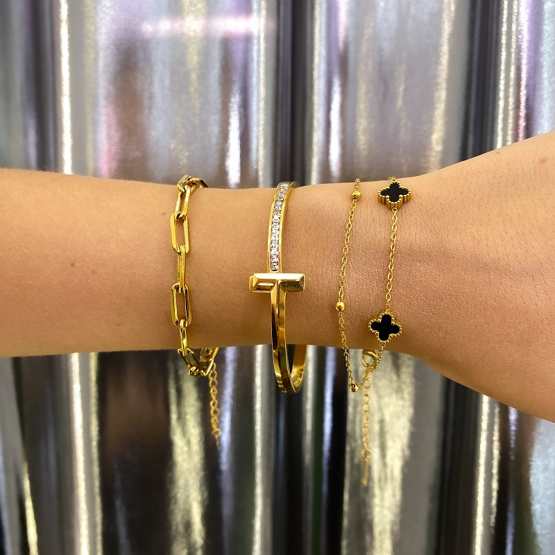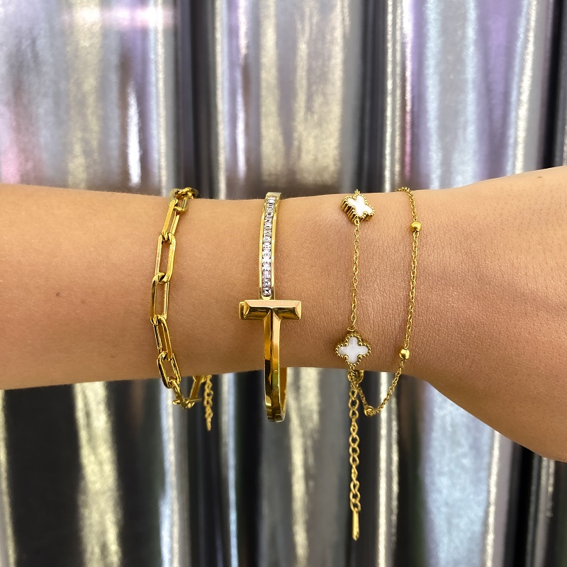 Em até 3x de R$ 11,63 sem juros Inspirada nas mais renomadas grifes de alta joalheria, essa pulseira combina tradição e elegância em um design minimalista e atemporal. Os elos retangulares, entrelaçados com perfeição, transbordam sofisticação e charme, elevando qualquer visual do básico ao mais elaborado. Use sozinha para um visual minimalista e elegante, ou combine-a com outras pulseiras e braceletes para criar composições únicas e cheias de personalidade.