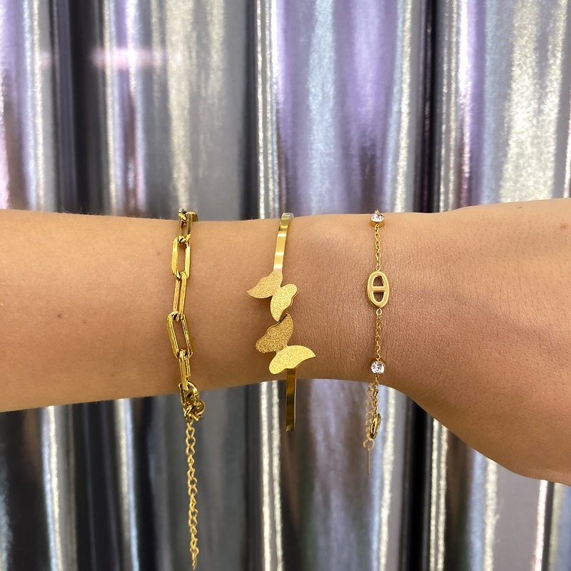 Pulseira corrente elo retangular dourada – aço inoxidável