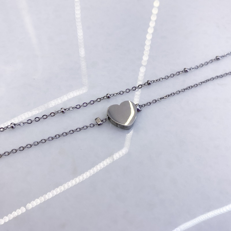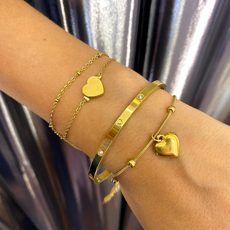 Pulseira dupla delicada coração dourada – aço inoxidável