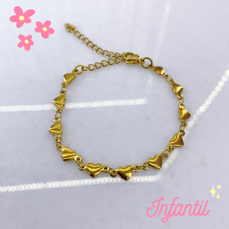 Pulseira infantil corrente coração dourada – aço inoxidável